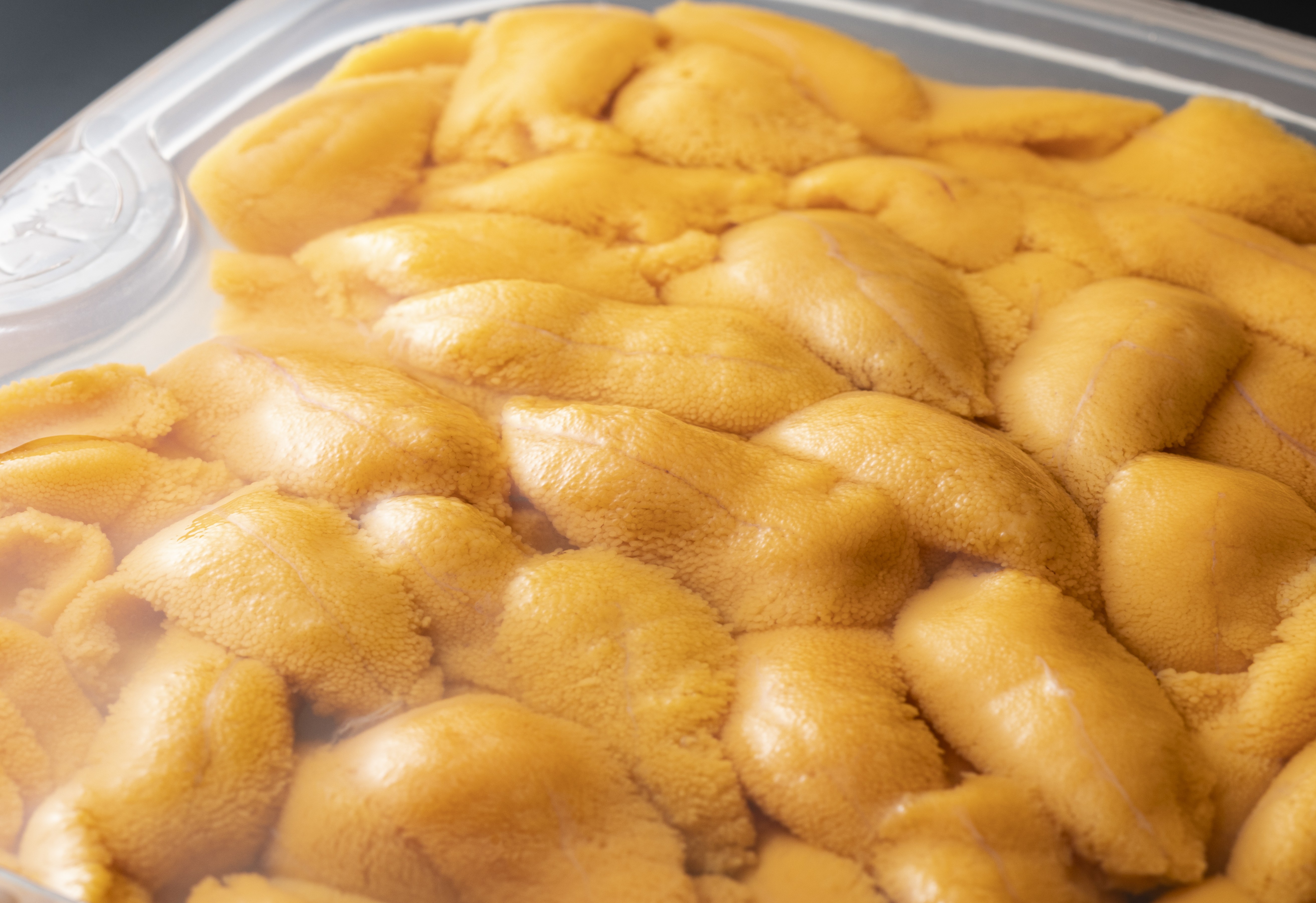 折うには、殻から取り出したウニを木箱(折)に丁寧に並べた伝統的な形態で、見た目の美しさと扱いやすさが特長です。余分な水分が抜け、ウニの甘みとコクがしっかりと感じられるため、濃厚な味わいを好む方に親しまれています。贈答用として選ばれることも多く、寿司や丼など、料理に使いやすい点も魅力です。