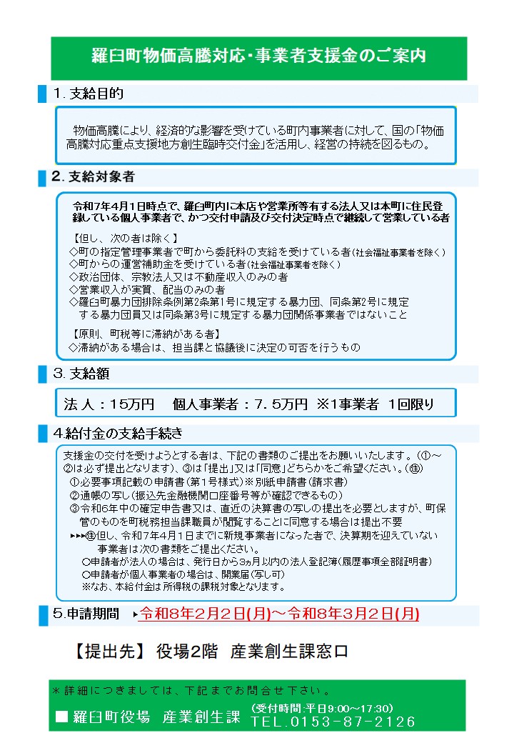 詳細は下記の「羅臼町物価高騰対応・事業者支援金のご案内」をご覧ください。